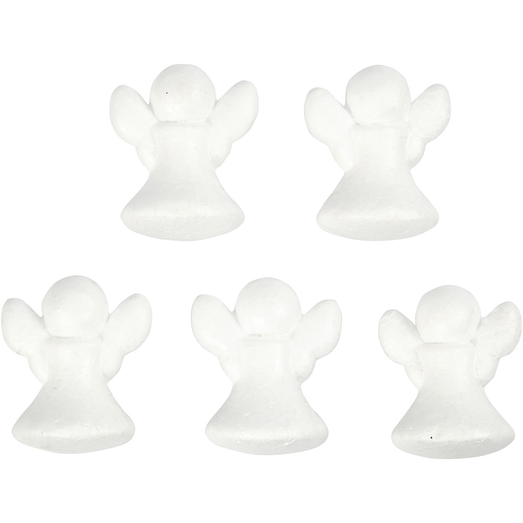 An angel made of white styrofoam to decorate with Foam Clay or to decoupage, it has a tilting effect and can either stand or be used for hanging. Angel, white, H: 6 cm, 5 pc/ 1 pack