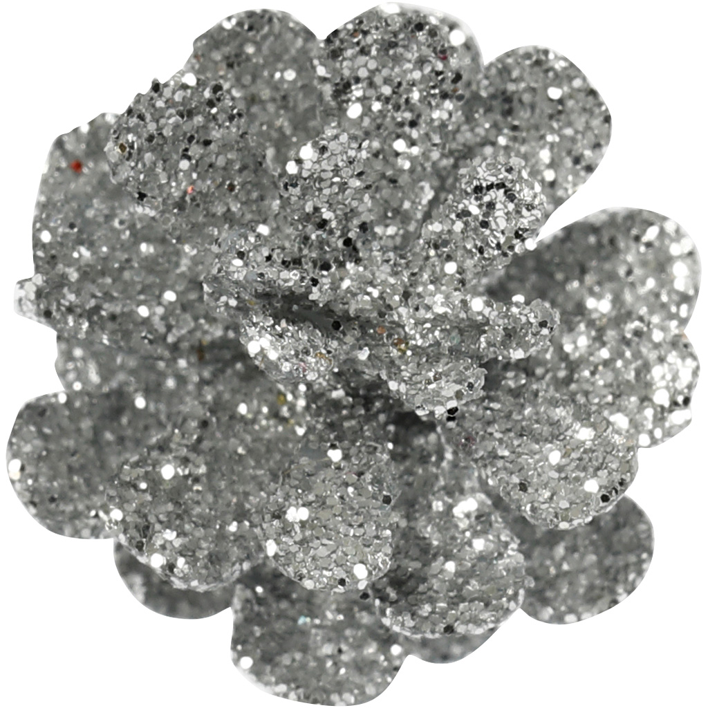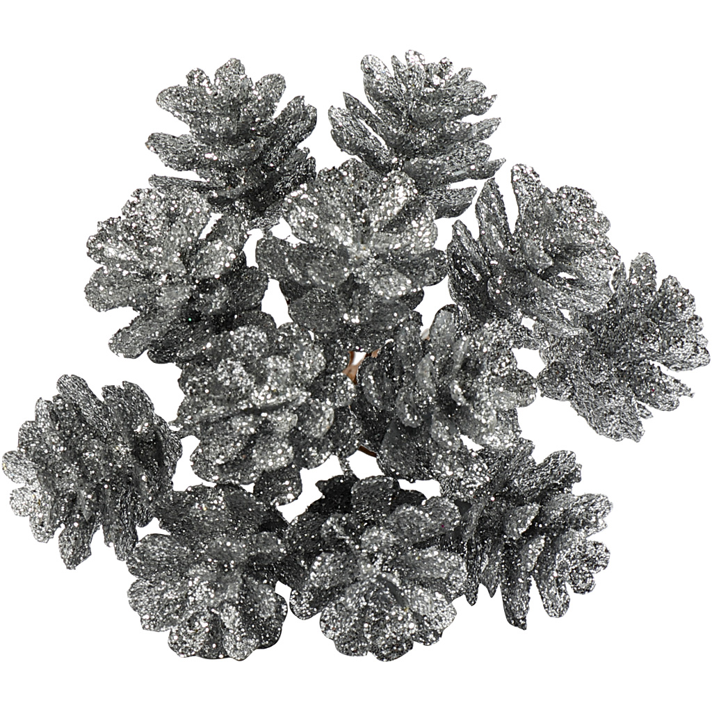 Stick with decorative cones of polyfoam. Artificial cones, silver, dia. 20 mm, 12 pc/ 1 pack