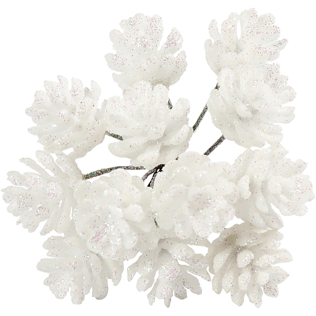 Stick with decorative cones of polyfoam. Artificial cones, white, dia. 20 mm, 12 pc/ 1 pack