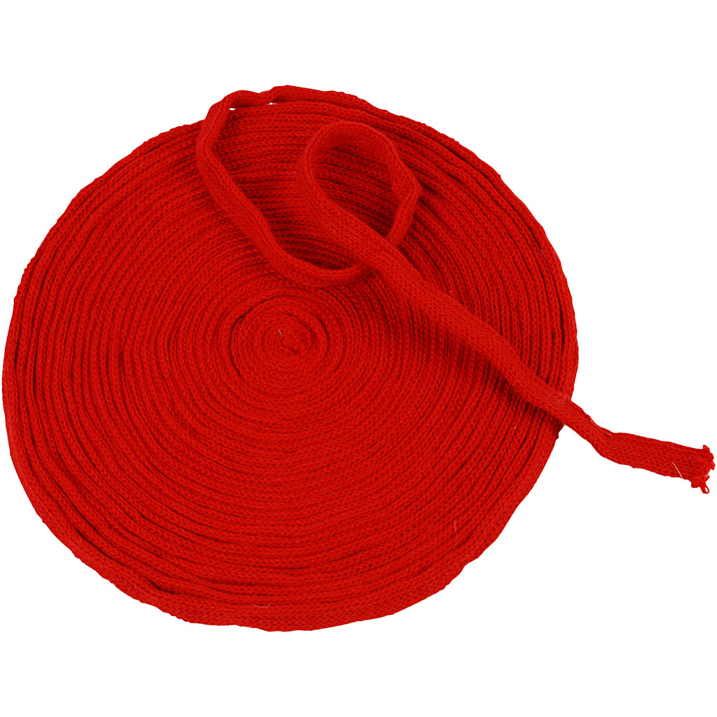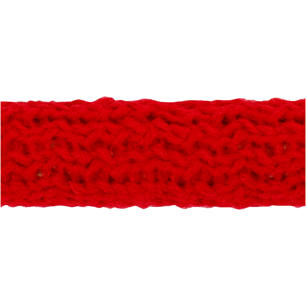 Strong, dense quality knitted tube 100 % acrylic. Supplied in a roll. Knitted Tube, christmas red, W: 10 mm, 10 m/ 1 roll