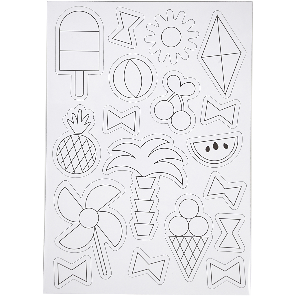 Punched magnet figures with preprinted motifs. Lightly decorated with black, coloured pencils, glitter, etc. Magnets, Summer, size 14,85x21 cm, 1 sheet