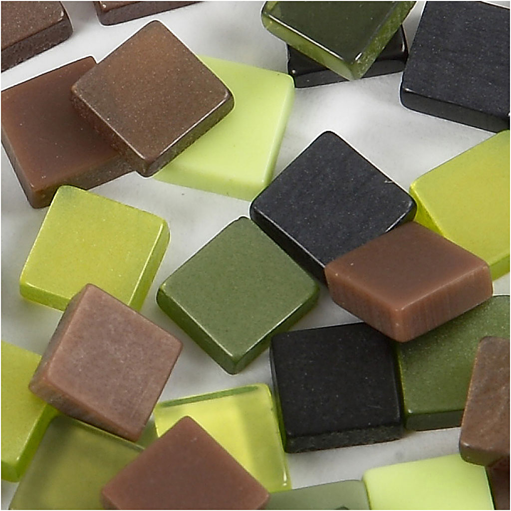 Beautiful mosaic of resin with matt, glossy and bright surfaces. Mini Mosaic, green glitter, size 5x5 mm, thickness 2 mm, 25 g/ 1 pack
