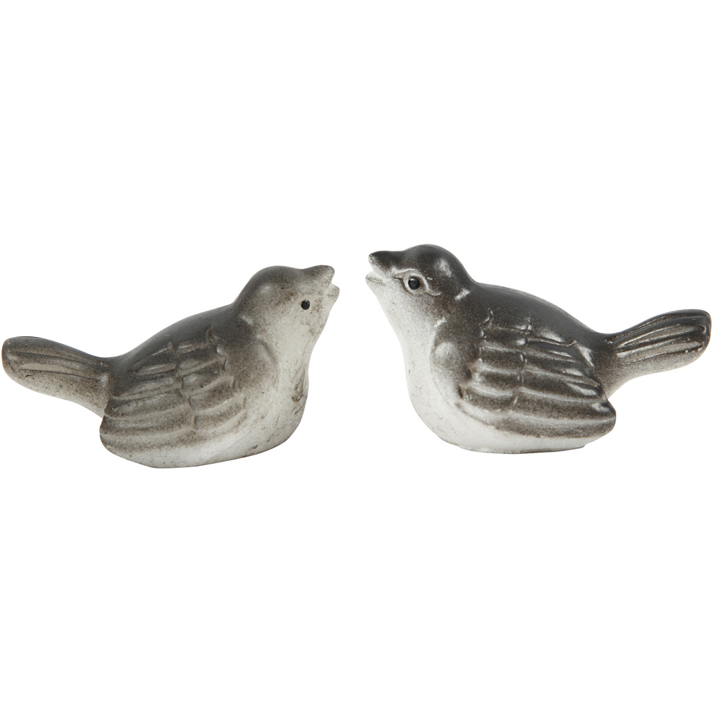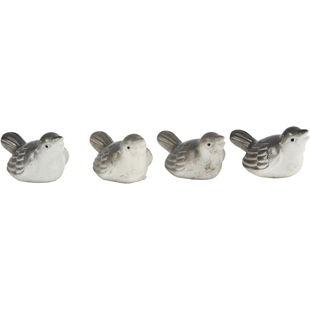 Small figures made of resin. Used for decoration. Pack with 4 grey miniature birds for decoration. Miniature figurines, sparrows, H: 18 mm, 4 pc/ 1 pack