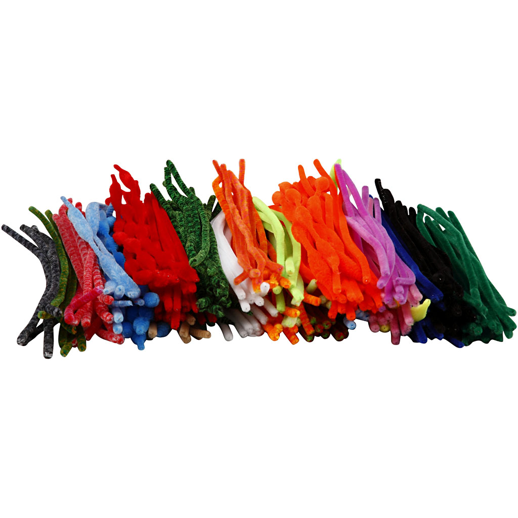 Also known as pipe cleaners, our chenille stems, with their lovely chunky nylon bristles, are great for expressing your creativity. Chenille is an ideal accessory for a wealth of creative hobby projects. Pipe Cleaners, assorted colours, L: 30 cm, thickness 6-15 mm, 500 asstd./ 1 pack