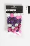 Spherical pompoms in different colours and two sizes, with and without glitter. Pompoms, purple, light red, white, dia. 15+20 mm, 48 asstd./ 1 pack