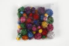 A mix of sparkly, soft, fluffy, round pom-poms in assorted sizes. Pompoms, bold colours, dia. 15-40 mm, glitter, 62 g/ 1 pack
