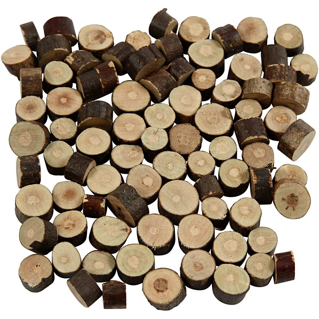 Rustic assortment of wood slices for decoration. Wood Mix, dia. 7-10 mm, thickness 4-5 mm, 230 g/ 1 pack