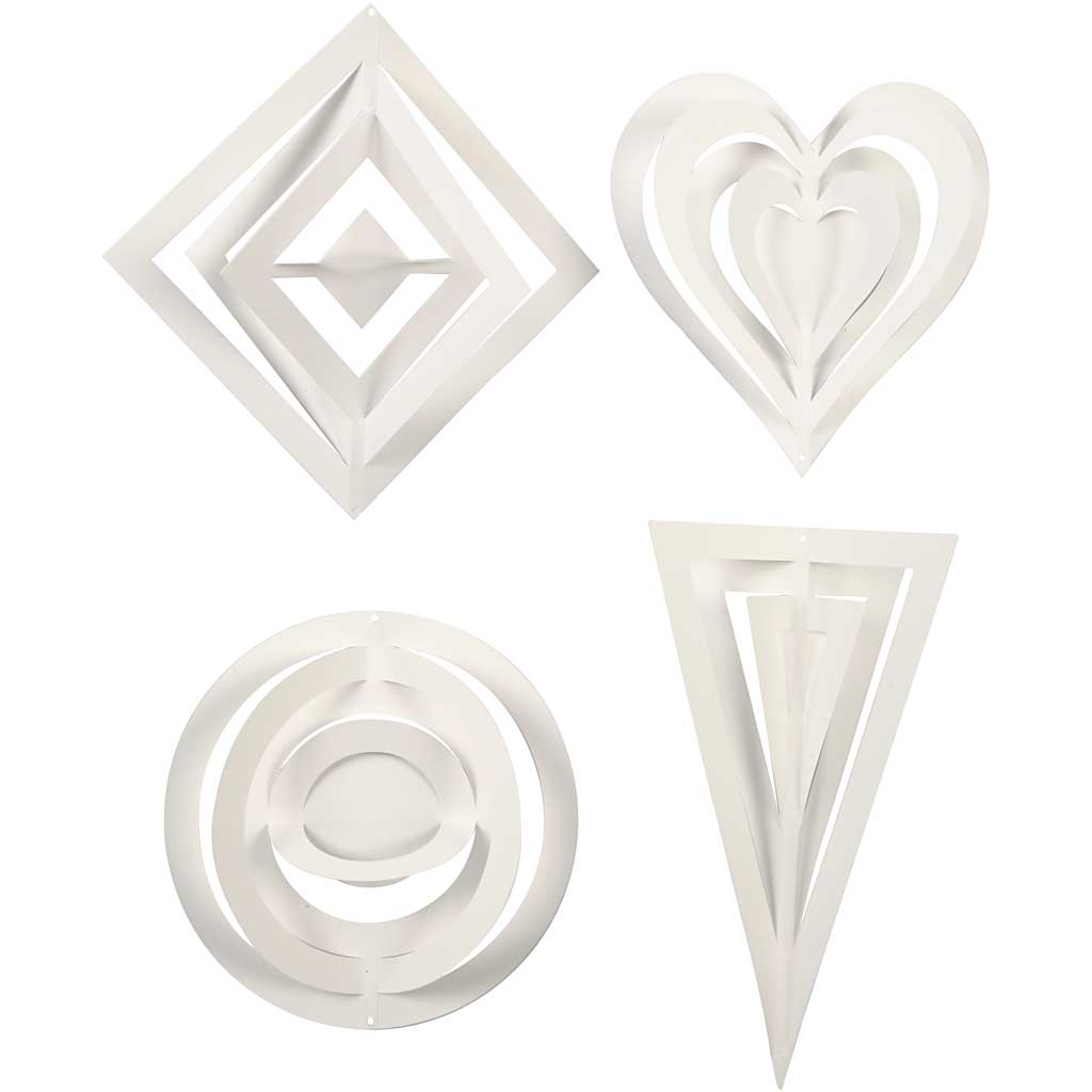 Ornaments made from thick cardboard from TeACH MeĀ®. Each suspension consists of 5 consecutive frames, which can be folded in different directions. 3D Hanging Decoration, white, H: 18+22+24 cm, W: 15+18+22 cm, 230 g, 16 pc/ 1 pack