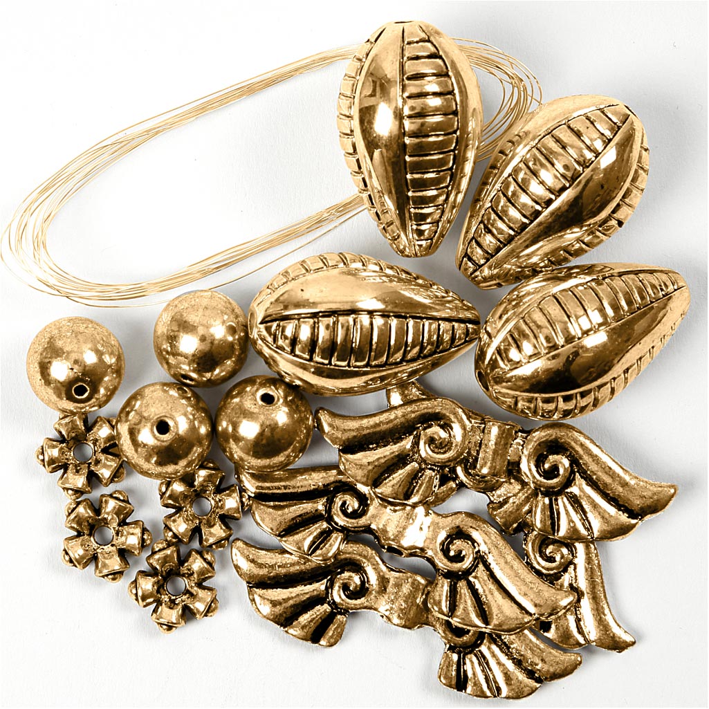 Starter Kit for self assembly angels including wire and instructions. Angel Ornament, gold, H: 5,5 cm, W: 4,5 cm, 4 pc/ 1 pack
