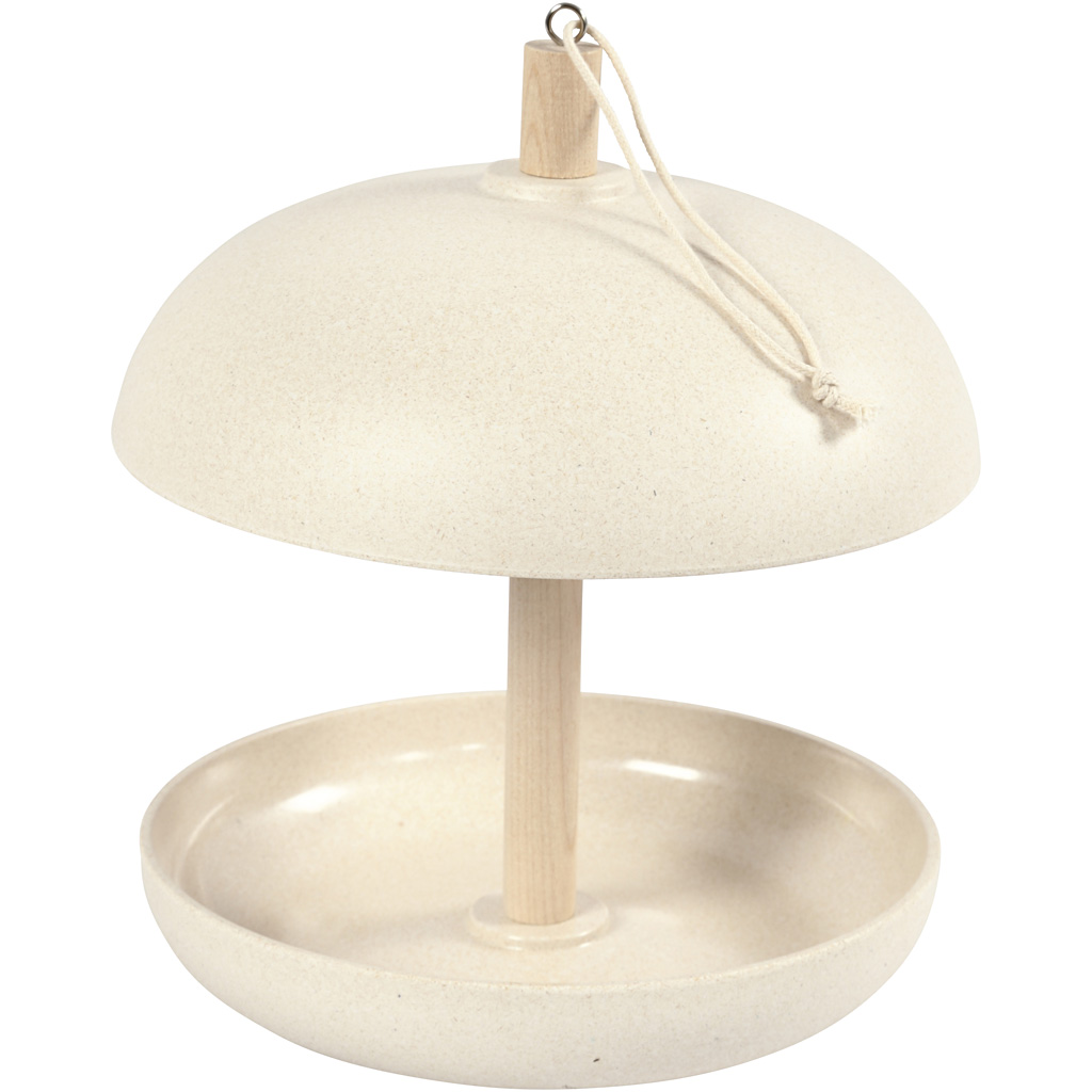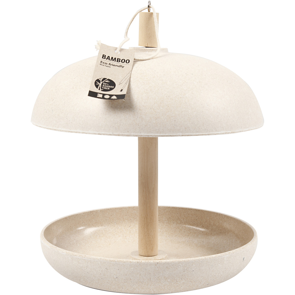 Two-piece bird feed house made of bamboo fiber with bamboo tree through rod and string for hanging. Bamboo fiber with 20% polymer (binder) is an environmentally friendly product that is easily decorated with Plus Color craft paint, rub-on-stickers et. Bird Table , H: 23,5 cm, dia. 20 cm, 1 pc