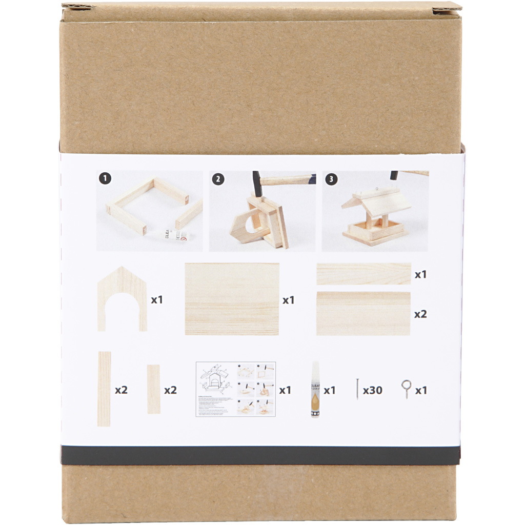 Material set for collectible bird feeding table of light wood. Guidance included. Bird table, H: 12,5 cm, D. 14,5 cm, W: 11,5 cm, 1 pc