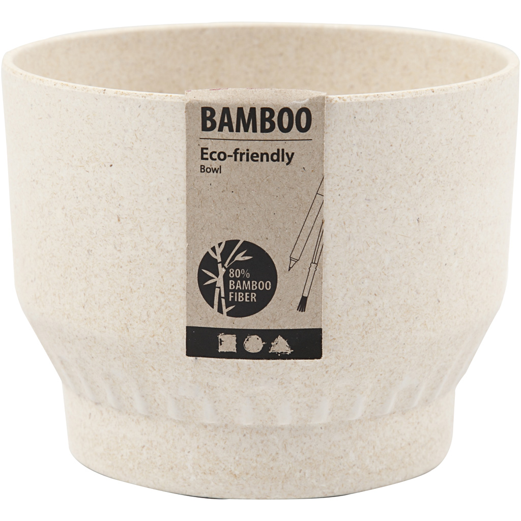 Bowl / herb pots with pleated pattern made of bamboo fibers Bamboo fiber with 20% polymer (binder) is an environmentally friendly product that is easily decorated with Plus Color craft paint, rub-on-stickers etc. Frost-proof down to -21 ° C. Bowl, H: 9,3 cm, dia. 12 cm, 1 pc