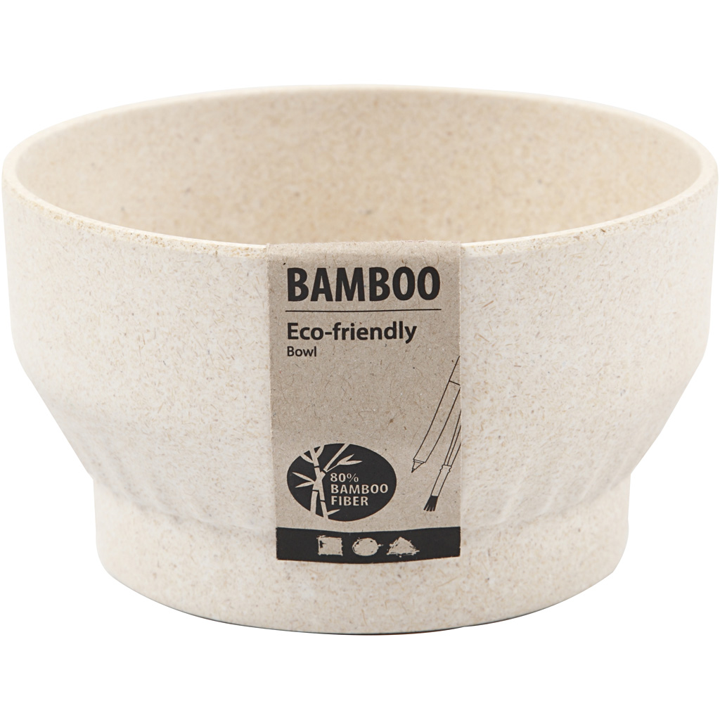 Bowl / herb pots with pleated pattern made of bamboo fibers Bamboo fiber with 20% polymer (binder) is an environmentally friendly product that is easily decorated with Plus Color craft paint, rub-on-stickers etc. Frost-proof down to -21 ° C. Bowl, H: 7 cm, dia. 12 cm, 1 pc