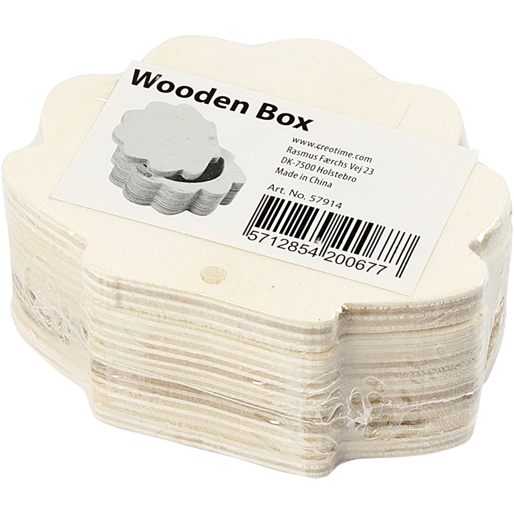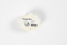 Figure carved box of light wood with removable twist cap in dowel. Has a discreet magnetic closure. Box, H: 4 cm, W: 8 cm, 1 pc