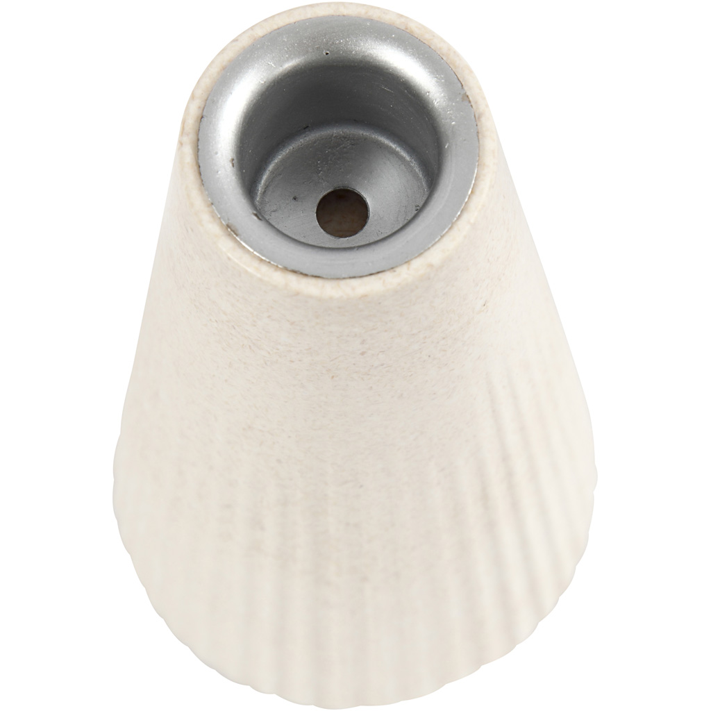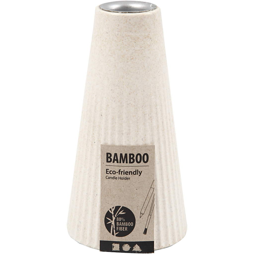 Candlestick with pleated pattern made of bamboo fibers with metal insert for normal candles Bamboo fiber with 20% polymer (binder) is an environmentally friendly product that is easily decorated with Plus Color craft paint, rub-on-stickers etc. Candle Holder, H: 13 cm, dia. 7 cm, 1 pc