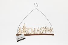 Christmas ornament of bright wood with dark edges. Set on natural stick with suspension of black metal wire. Christmas decoration, XMAS, H: 7 cm, depth 0,5 cm, W: 22 cm, 1 pc