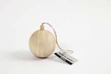 Christmas ball of light wood with hanging string. Christmas Ornament, dia. 6,4 cm, 1 pc