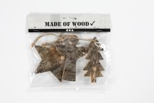 Ornament of light wood with bark on one side and string for mounting. Christmas ornaments, H: 10 cm, W: 8 cm, 3 pc/ 1 pack