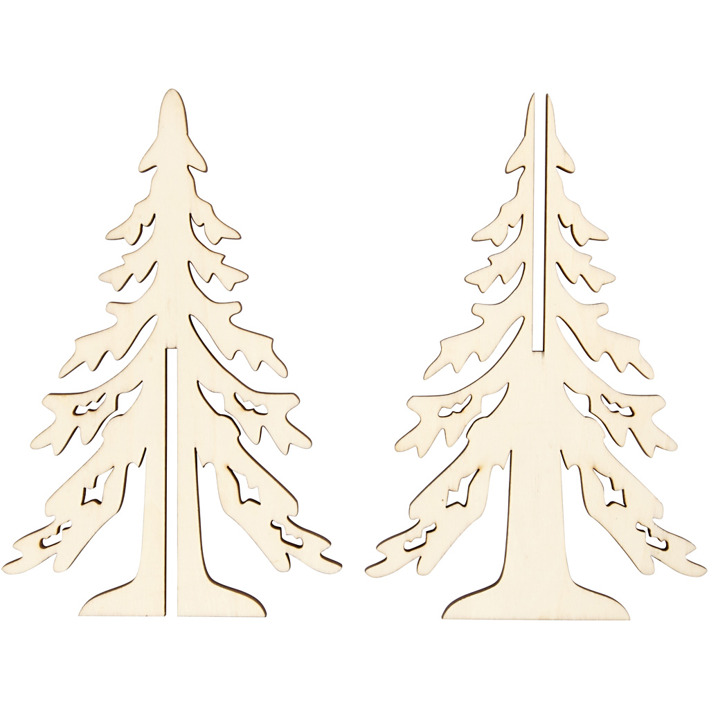 Bright Christmas tree in 3mm thick wood with dark edges. Assembled by two parts with a slit. Christmas Tree, H: 20 cm, W: 13 cm, 1 pc