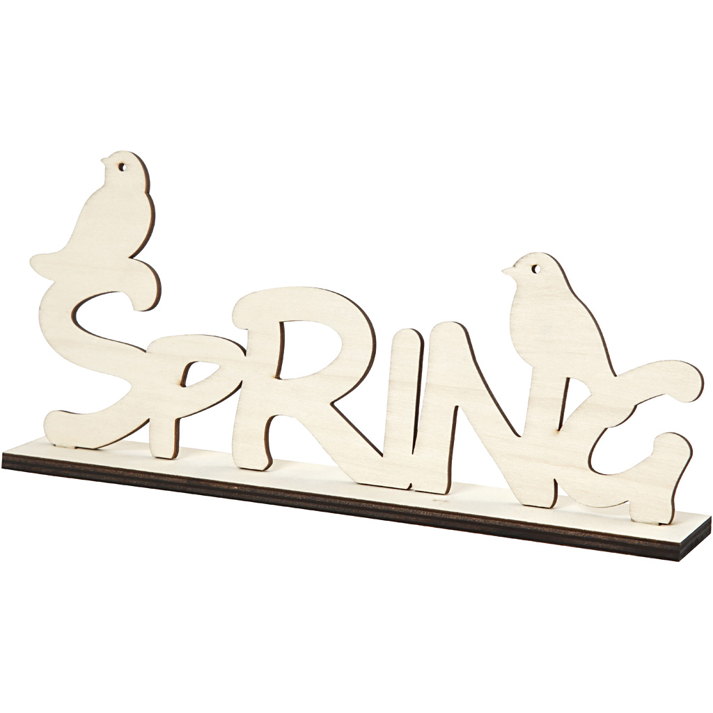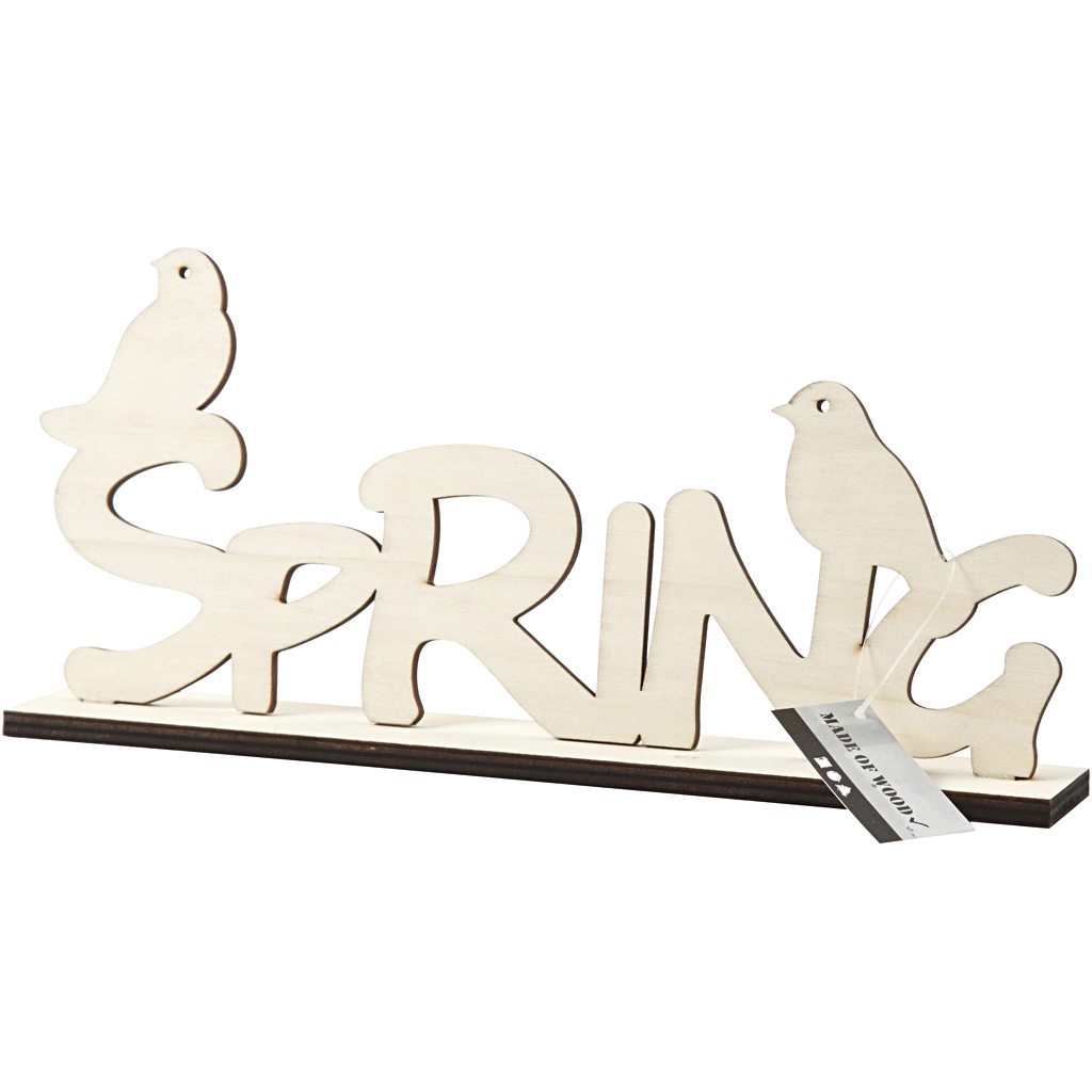 Decoration word in light wood with dark edges mounted on foot. Decoration Word, H: 13,5 cm, L: 29 cm, 1 pc