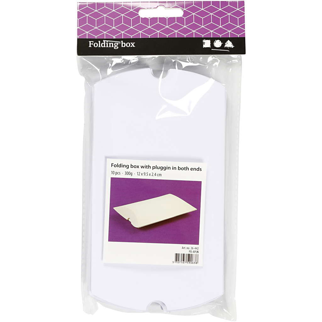 Oblong box in card with plugging in both ends. Supplied folded. Folding box, white, size 12x9,5x2,4 cm, 300 g, 10 pc/ 1 pack