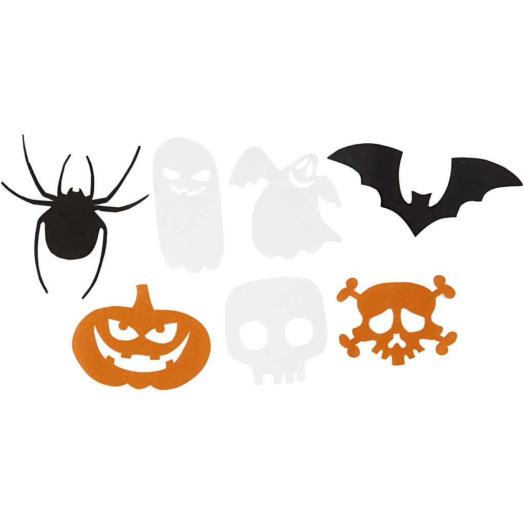 White card punched-out motifs Pack with 7 different designs. Halloween Motifs, size 5-10 cm, 180 g, 50 pc/ 1 pack