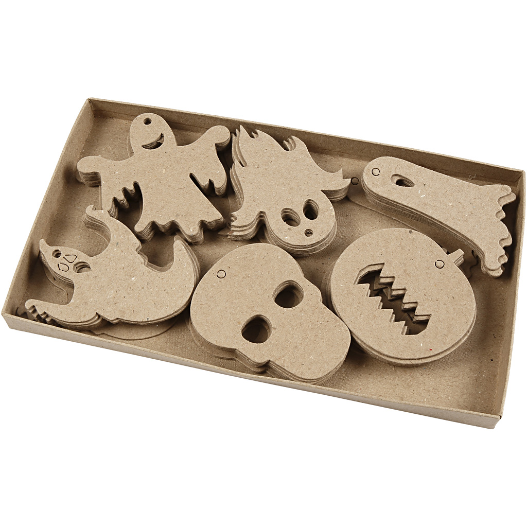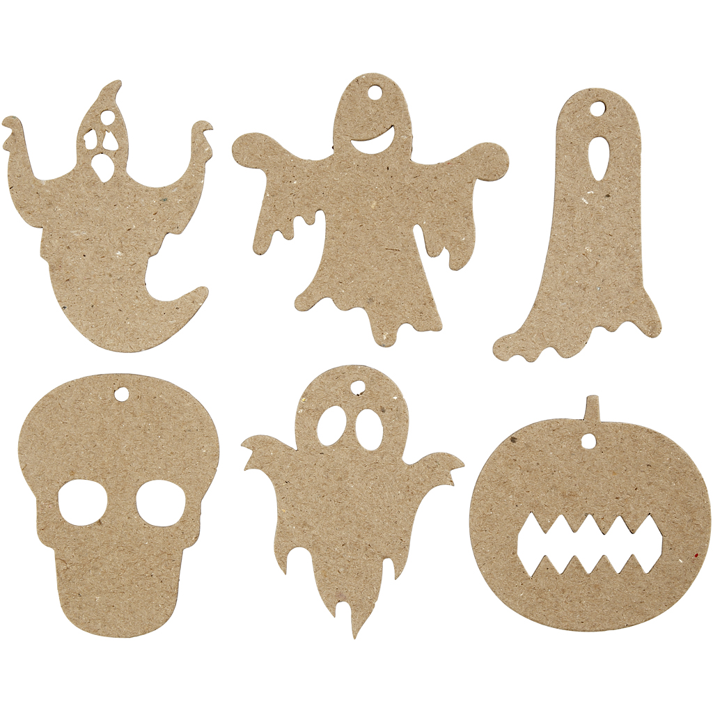 Flat ornaments made of cardboard with a hole for mounting, Pack with 6 different halloween motives each of 10 pcs. Halloween Ornaments, size 7-10 cm, 6x10 pc/ 1 pack