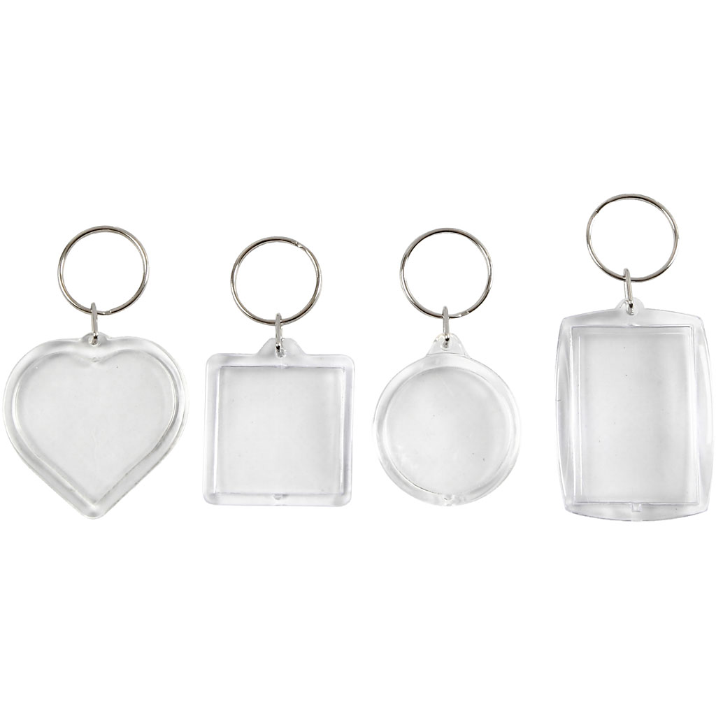 Key ring of transparent acrylic - with slot to insert your own drawings, photos etc. Key Rings, size 40-50 mm, 4 pc/ 1 pack