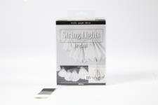 Battery powered light string with clear wire and 10 LED lights, all hidden behind the small white lampshades made of folded heavy card. Uses 2 x AA batteries - Item No. 14000 (not included). LED Light String with Lampshades, white, H: 80 mm, L: 100 cm, dia. 65 mm, 1 pc