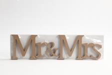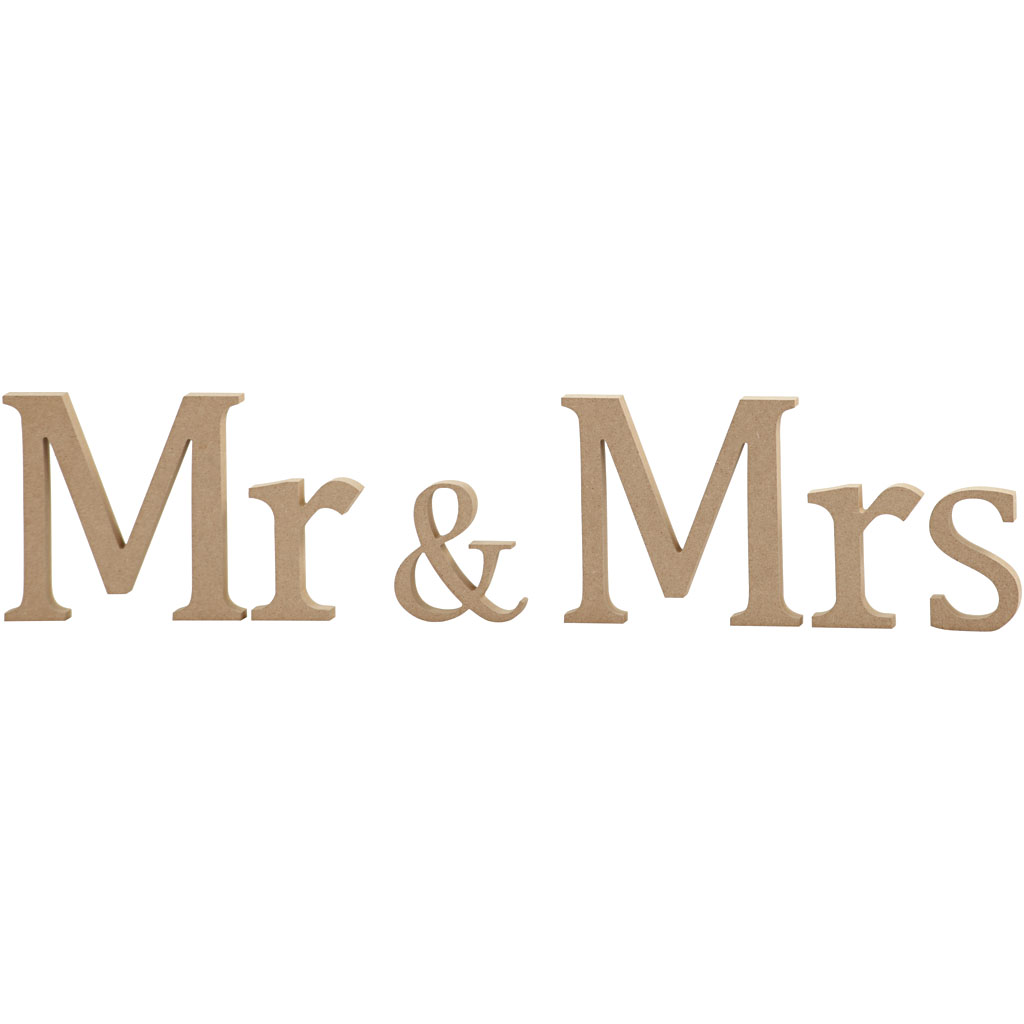 Words of molded letters in wood. Set of five letters and one character. Letters, Mr & Mrs, H: 13 cm, D. 1,5 cm, 1 set