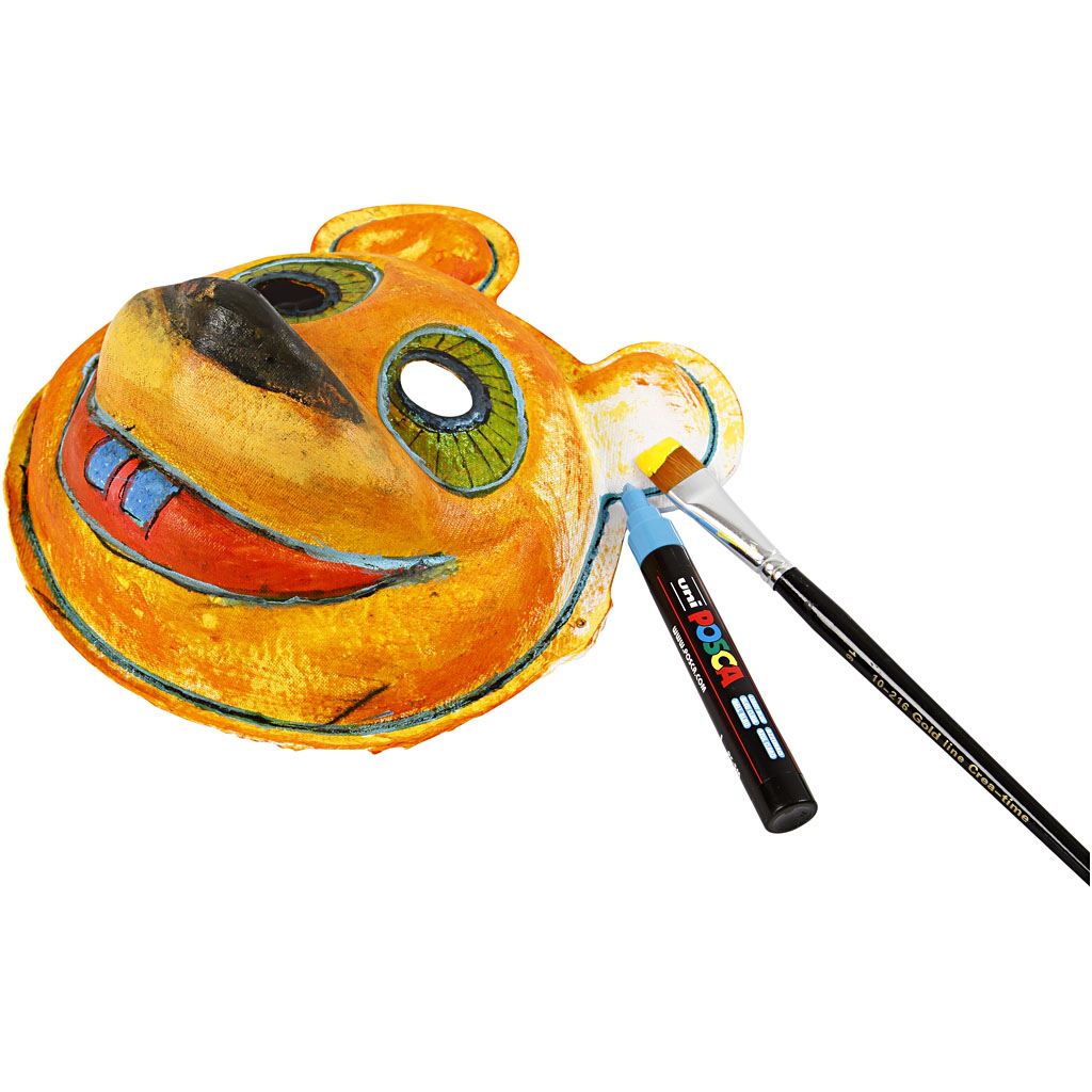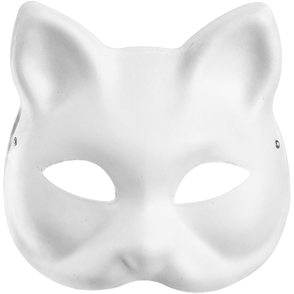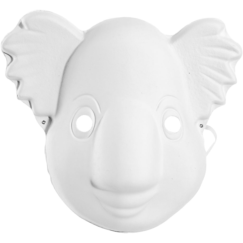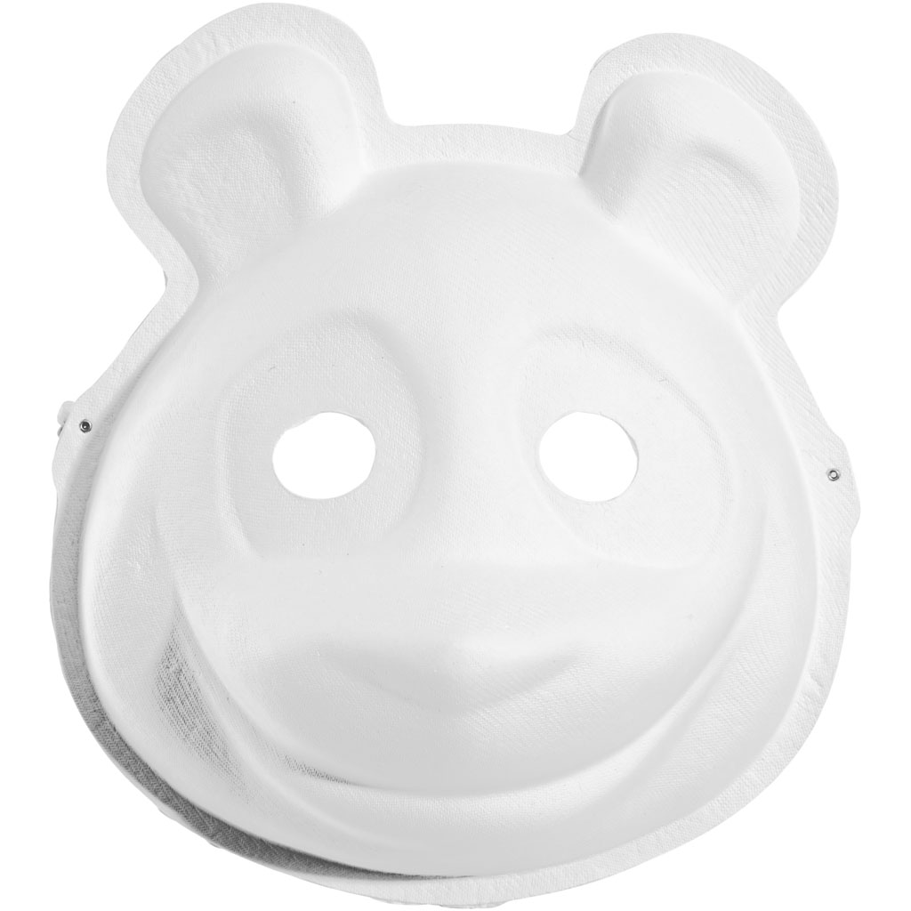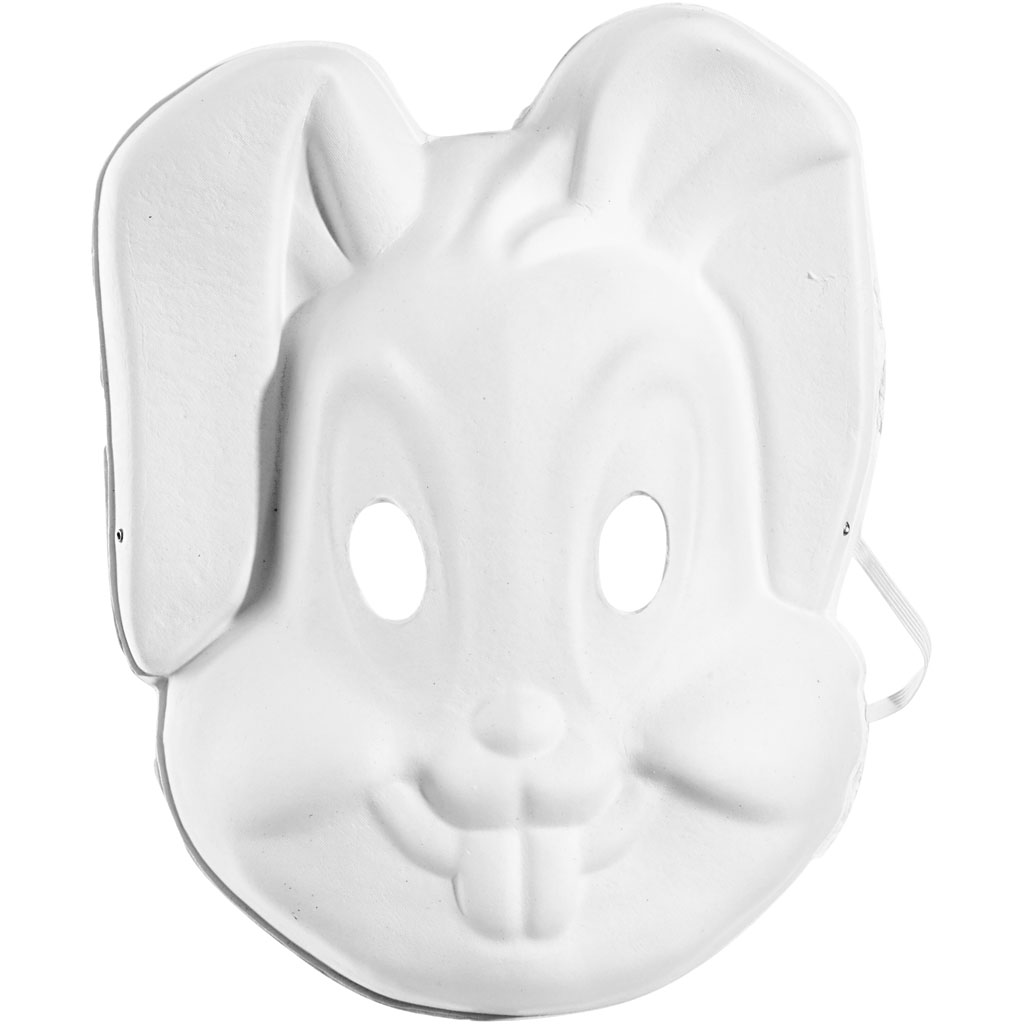 An assortment of formed masks of white paper pulp. A wide elastic band is mounted at the back of the masks. Pack with 4 different designs each of 3 pcs. Masks, white, H: 17-25 cm, W: 18-24 cm, 4x3 pc/ 1 pack