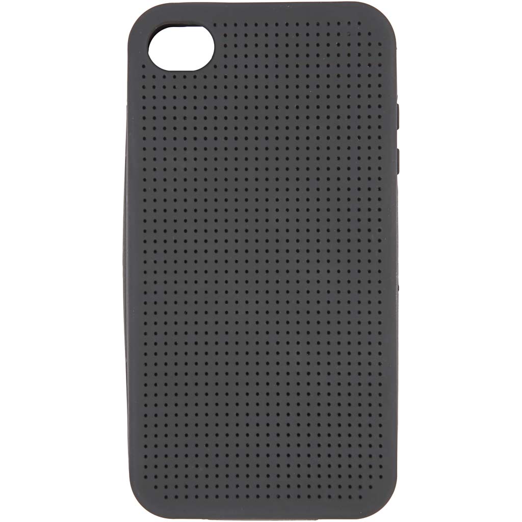 Silicone Cover that fits iPhone. The cover is perforated with small holes so that it can be embroidered. 4 patterns shown on the packaging. Mobile Phone Cover To Embroider, black, no. 4/4S, size 11,8x2,4 cm, thickness 4,3 mm, 1 pc