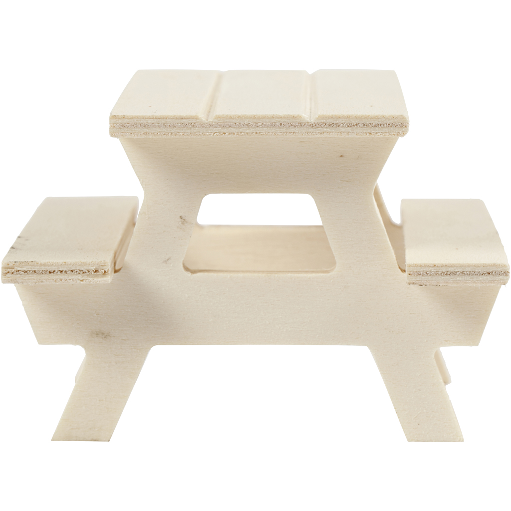 Small picnic bench in light wood. Picnic Bench, H: 5,5 cm, L: 8 cm, 1 pc