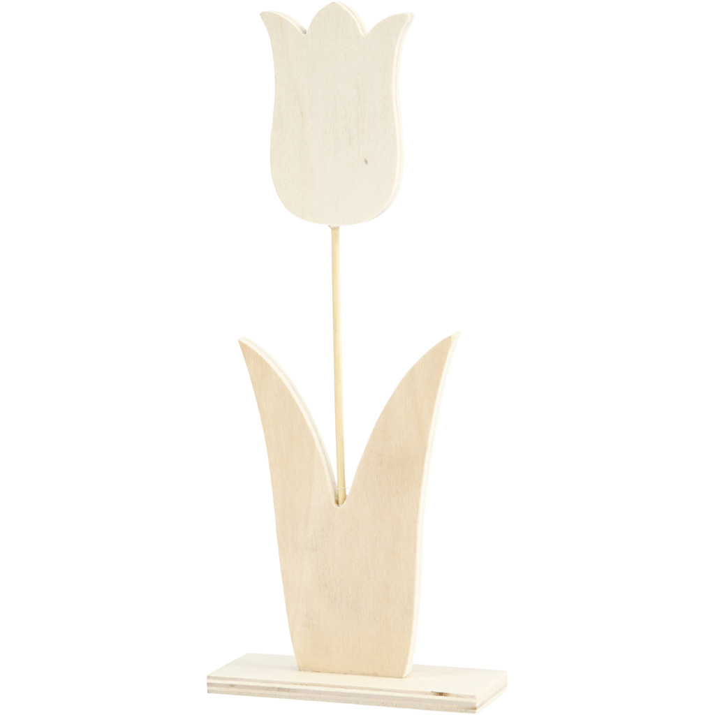 Flower in light wood mounted on foot, so that it can stand freely. Tulip, H: 31 cm, W: 13 cm, 1 pc