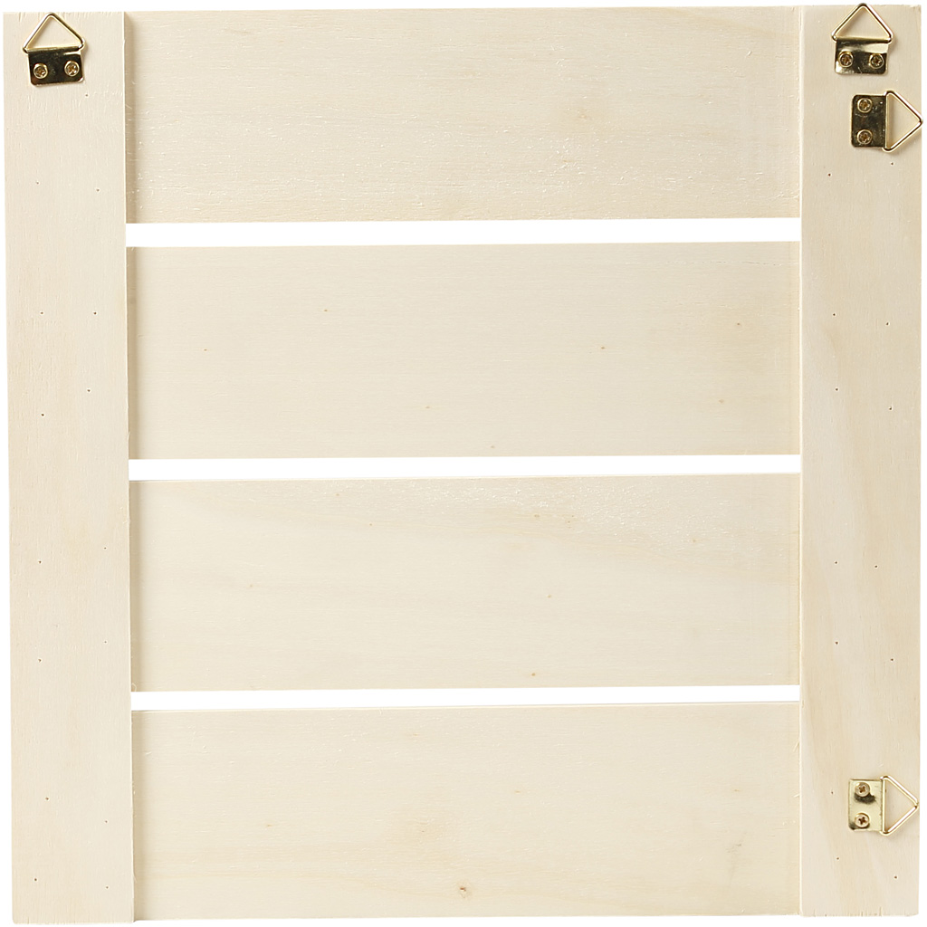 Panel of slats in light wood, mounted with brackets for both vertical and horizontal suspension. Wall Decoration, size 28,6x28,6 cm, thickness 1,1 cm, 1 pc