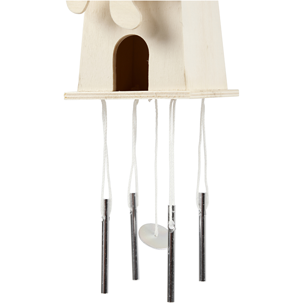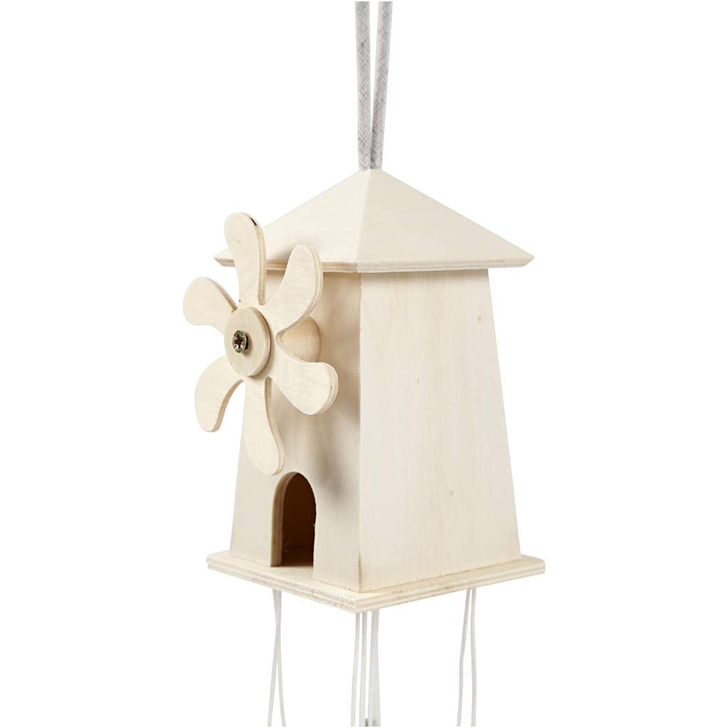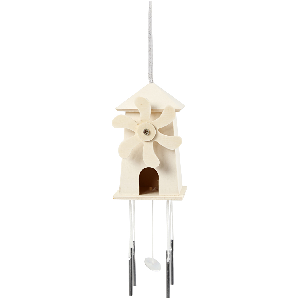 Wind chimes designed as a small mill in light wood with moving wings and cord for hanging. Wind Chime, H: 12 cm, D. 7 cm, 1 pc