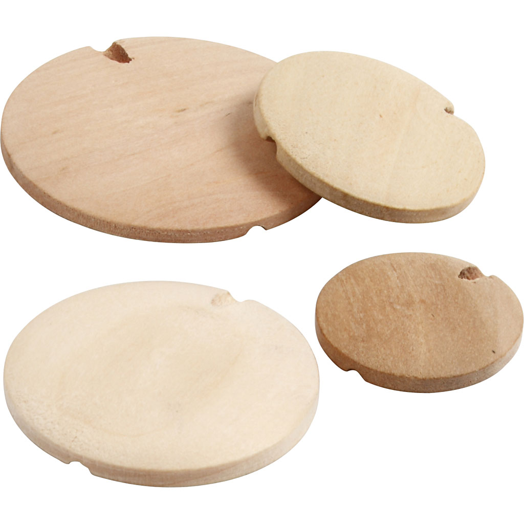Flat wooden button with curved front, flat back and obliquely drilled hole. Wood Button pearl, dia. 20-35 mm, 320 pc/ 1 pack