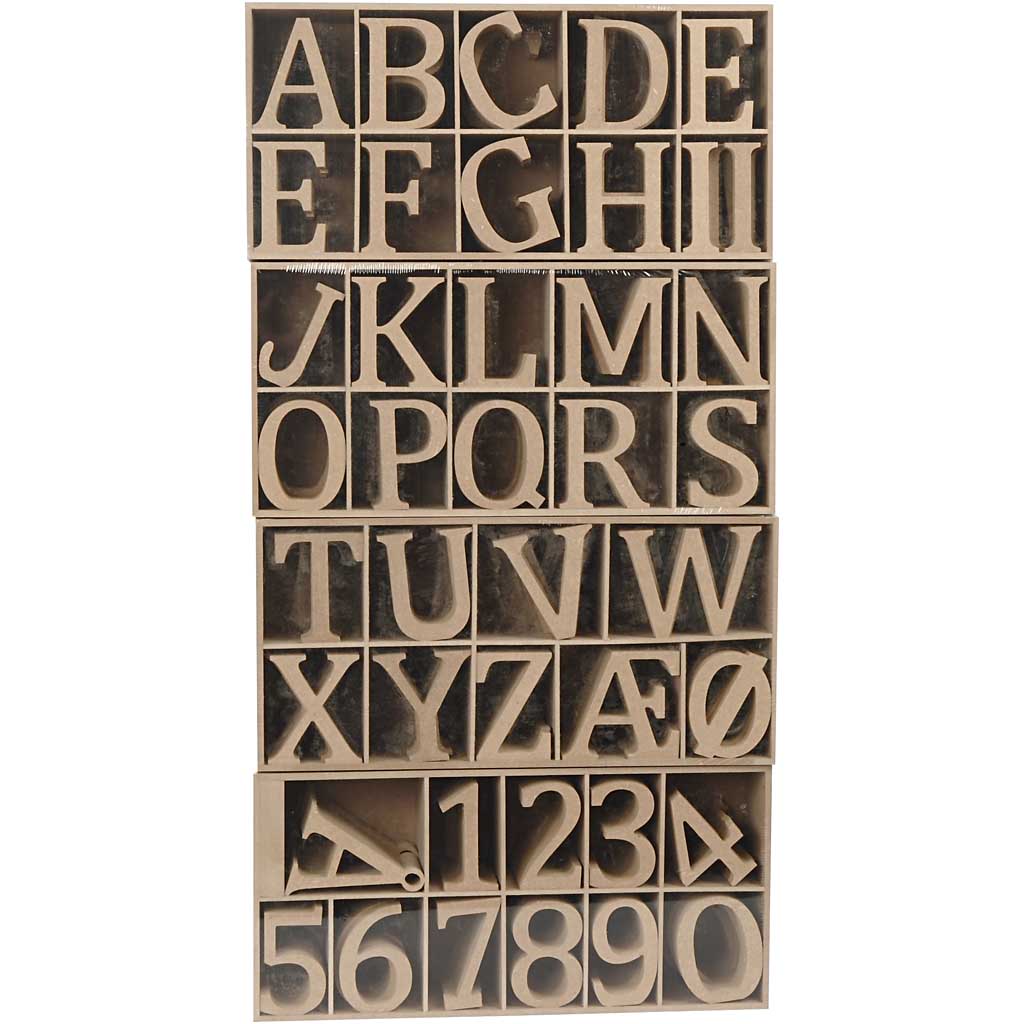 An assortment of large, wooden numbers and letters. Supplied in 4 display boxes with 6 pcs. of each letter A-Å (12 pcs. E, 12 pcs. I) and the numbers 0-9. Wooden Letters and Numbers, H: 8 cm, thickness 1,5 cm, 246 pc/ 1 pack