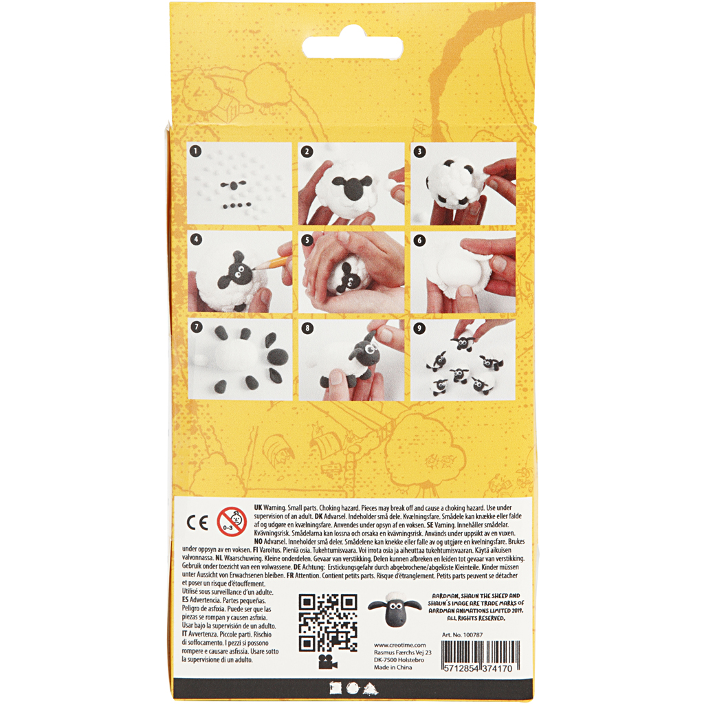 Material kit for modelling fun mini bowling sets with Shaun and the other sheep from Shaun the Sheep in Silk Clay® and Foam Clay®. Guidance included. Contents: Silk Clay and Foam Clay, styrofoam balls and eggs as well as rolling eyes in three sizes. Bowling, 1 set