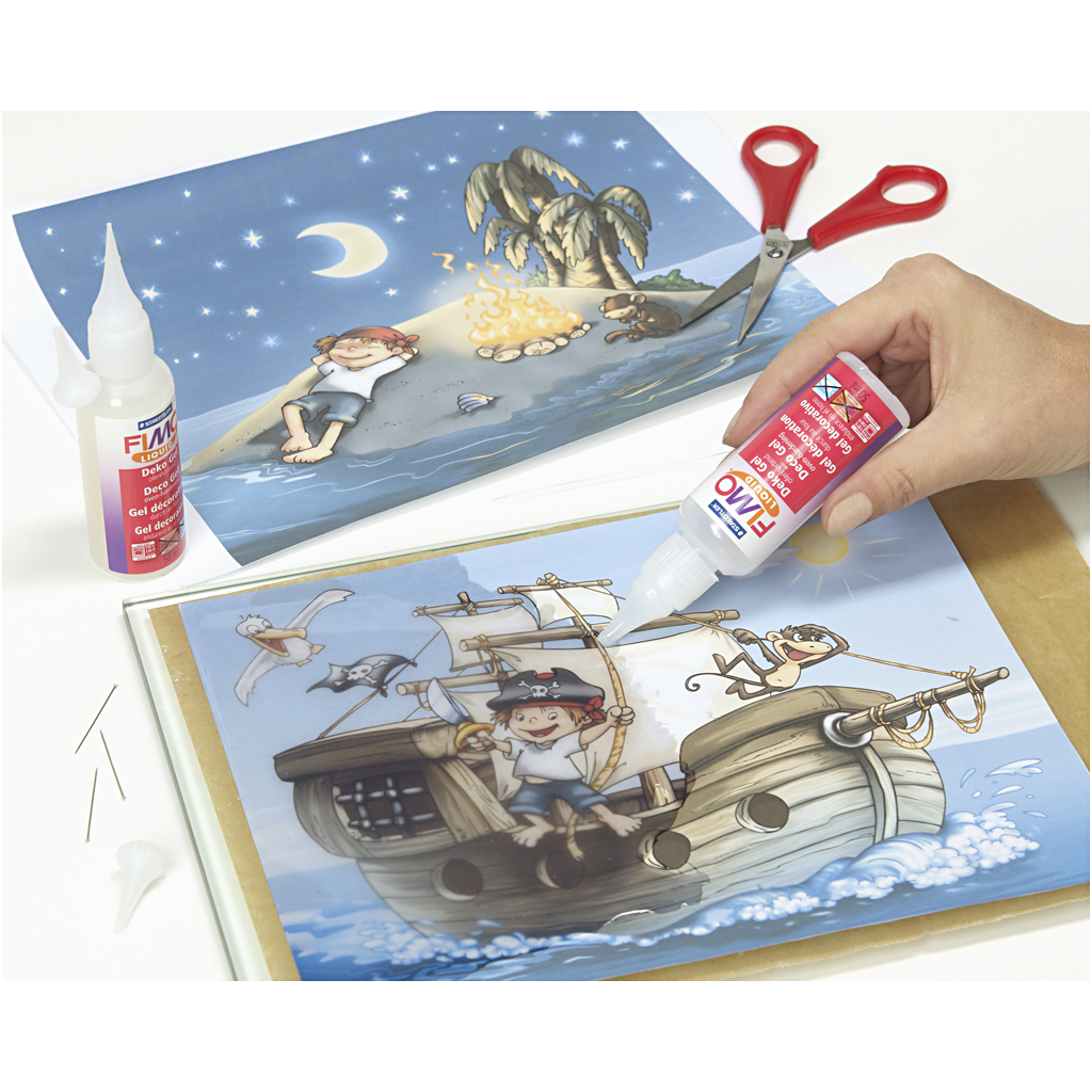 Oven-hardening deco gel, transparent. Suitable for variety of applications. FIMO® liquid can be mixed with oil paints and paint powder. Extremely flexible. The finished FIMO® figures are hardened in the oven at 130°C for 20 minutes, which should be d. FIMO liquid, 50 ml/ 1 bottle