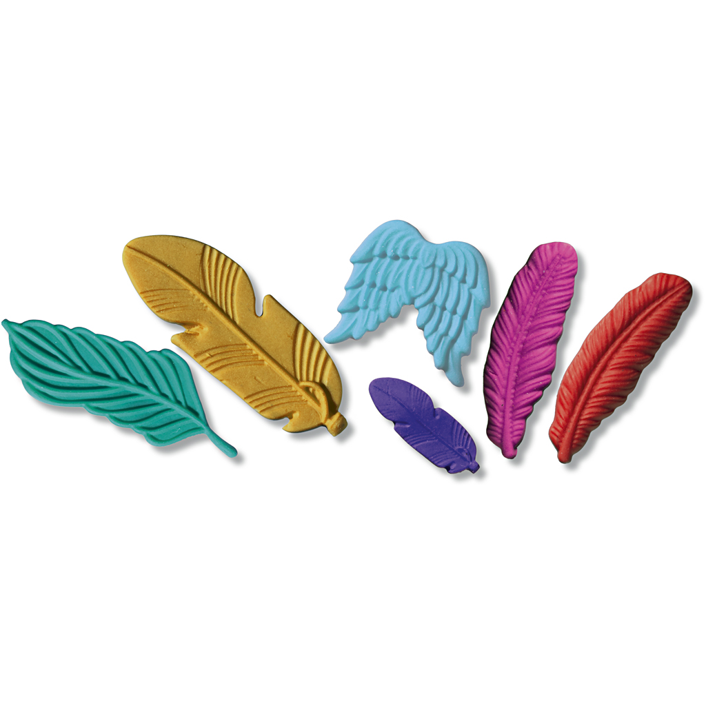 Shape with 6 different patterns of heat resistant silicone. The shape is flexible and durable can be used for hardening in oven of max. 130°C and easy to clean after use. FIMO push mould, fetjers, dia. 7 cm, 1 pc