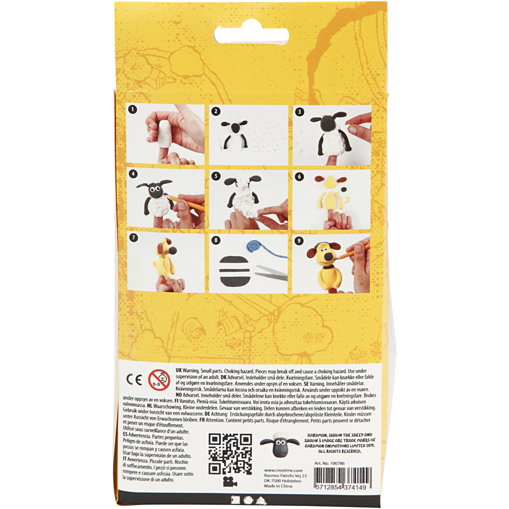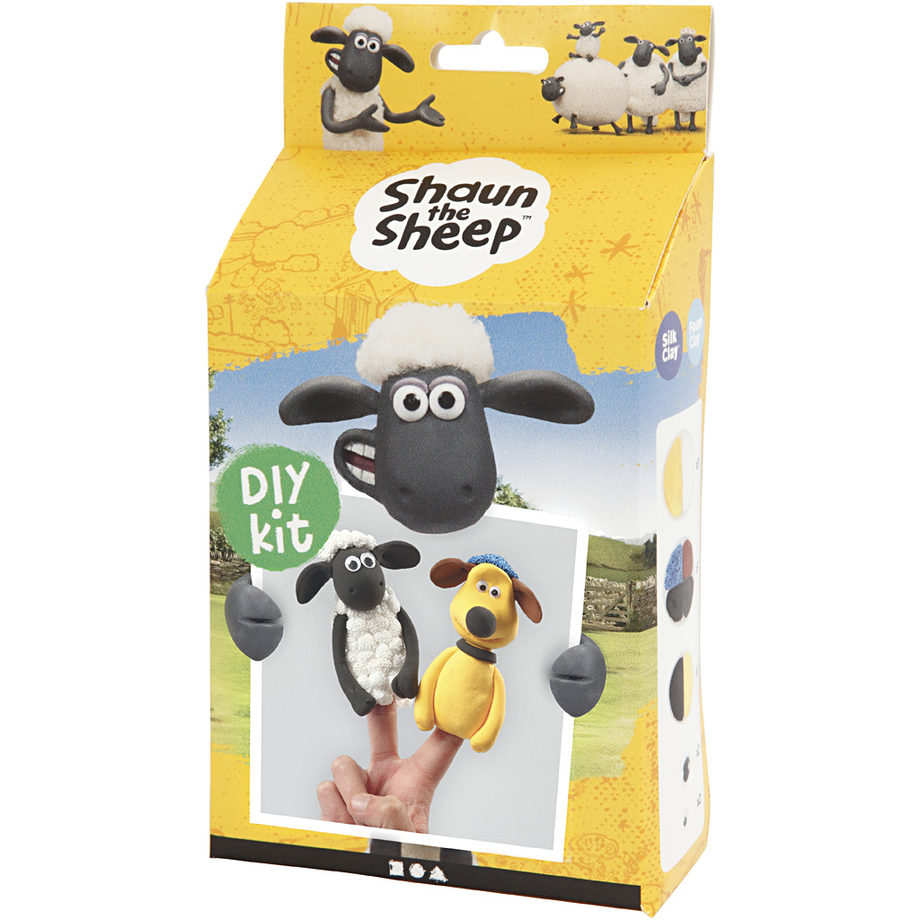 Material kit for modelling Shaun and Bitzer finger puppets from Shaun the Sheep in Silk Clay® and Foam Clay®. Guidance included. Contents: Silk Clay and Foam Clay in different colours as well as googly Eyes in two sizes. Finger puppets, 1 set