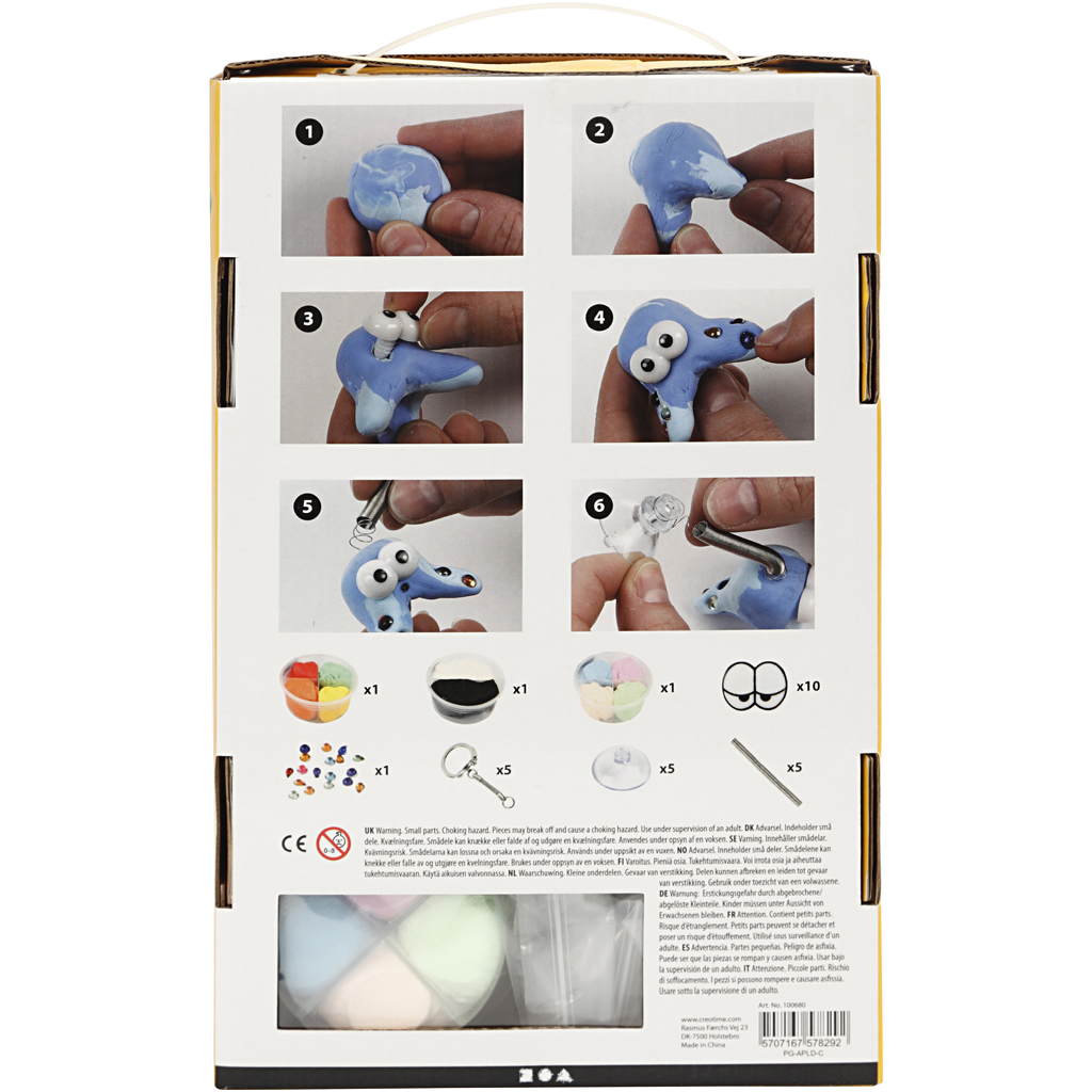 This kit includes all materials needed to make 10 figures using Silk Clay®. Contents: 3x40 g assorted Silk Clay®, approx. 20 rhinestones, 5 key chains, 10 assorted funny eyes fitted with fastener, 5 springs, 5 suction discs and full instructions. Funny Friends, small, size 30x18x5 cm, 1 set