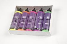 Viscous paint in a bottle with a writing tip. Used for detailing a relief effect on cardboard, stone, metal or fabric. Washable at 40°c with one day's drying. 3D Liner, neon colours, 5x100 ml/ 1 pack