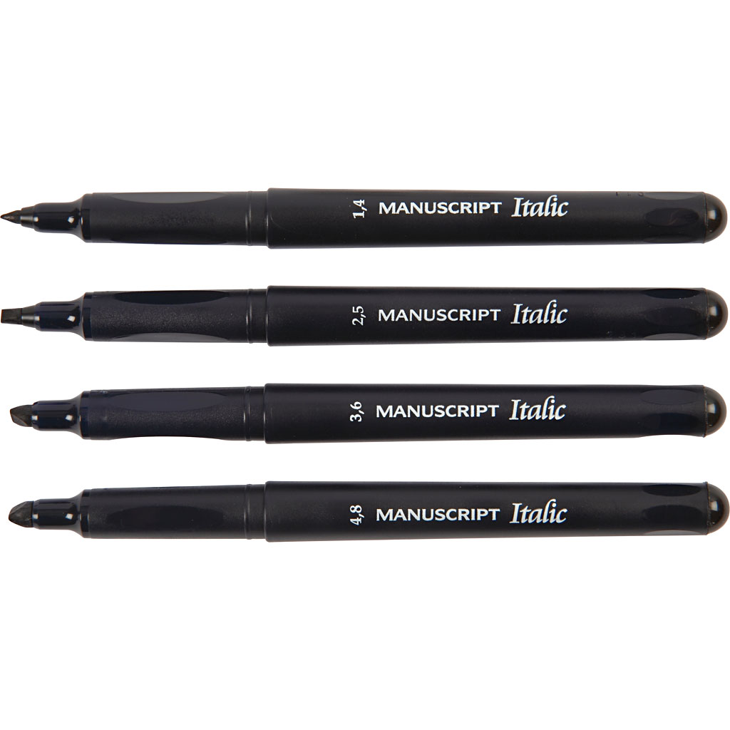 Set of 4 sizes high quality calligraphy markers. Non-water-resistant. Calligraphy Marker, black, line 1,4+2,5+3,6+4,8 mm, 4 pc/ 1 pack