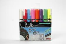 Waterproof and weather resistant ink for smooth and flat surfaces. Can be used on blackboards, glass, metal and plastic. Can be removed with a wet cloth. For cleaning a blackboard film with a slightly rough surface use an alkaline detergent with PH-v. Chalk Pen, line 1,8-2,5 mm, 8 pc/ 1 pack
