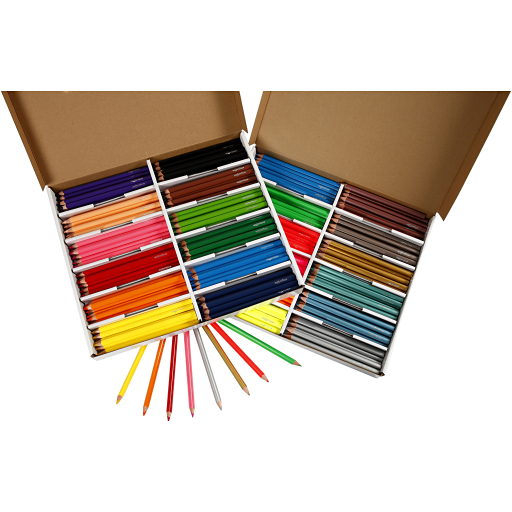 Premium quality, thick triangular shaped coloured pencils with bonded lead. Storage box with 12 colours by 12 pcs. Colortime Colour Pencils, assorted colours, L: 17,45 cm, lead 5 mm, JUMBO, 12x12 pc/ 1 pack