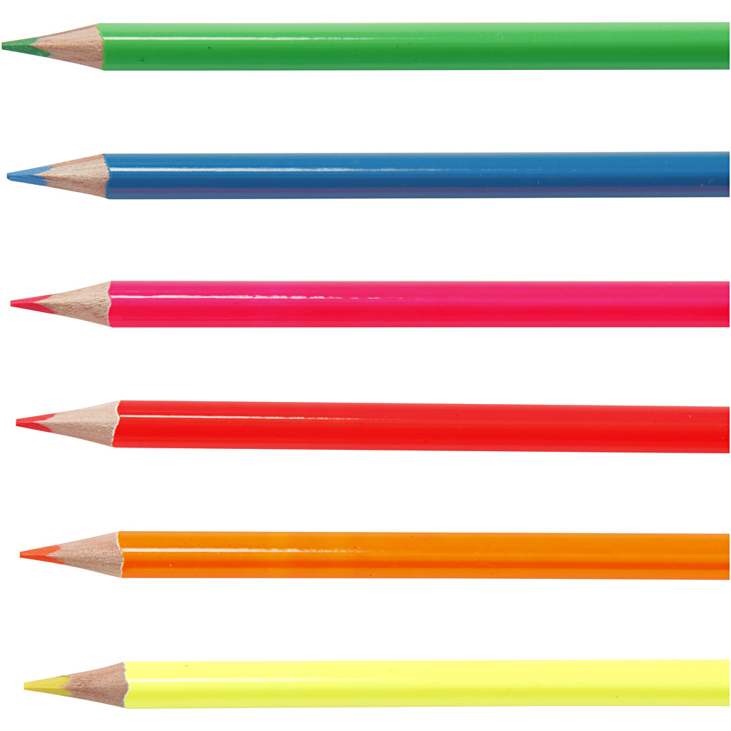 Premium quality, triangular shaped coloured pencils with bonded lead. Colortime Colouring Pencils, neon colours, L: 17,45 cm, lead 3 mm, 6 pc/ 1 pack