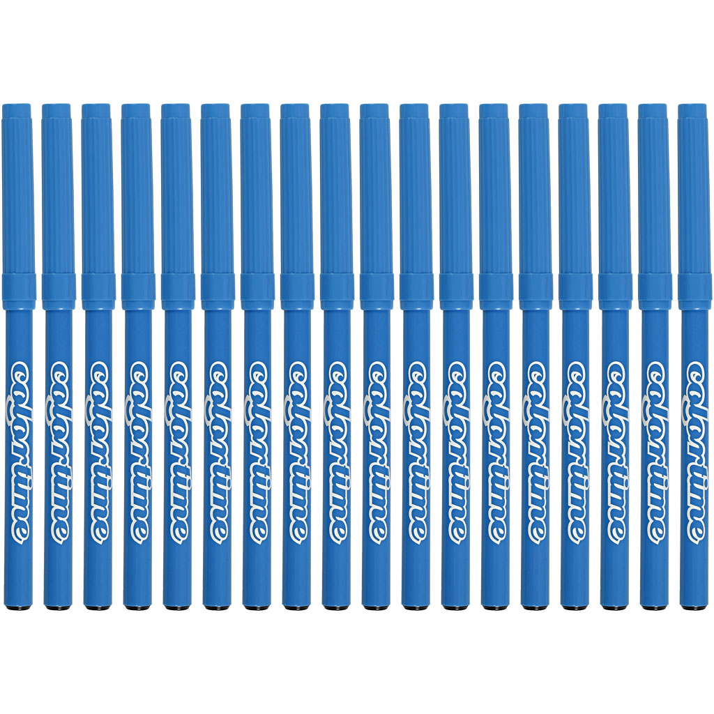 Water-based, semi-opaque markers in excellent robust quality and with very intense colours. Ventilated safety lids. Suitable for white absorbent surfaces such as paper, cardboard, colouring books etc. Colortime Markers, light blue, line 2 mm, 18 pc/ 1 pack