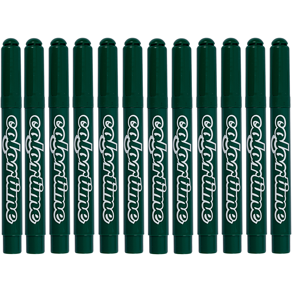 Water-based, semi-opaque markers in excellent robust quality and with very intense colours. Ventilated safety lids. Suitable for white absorbent surfaces such as paper, cardboard, colouring books etc. Colortime Markers, green, line 5 mm, 12 pc/ 1 pack